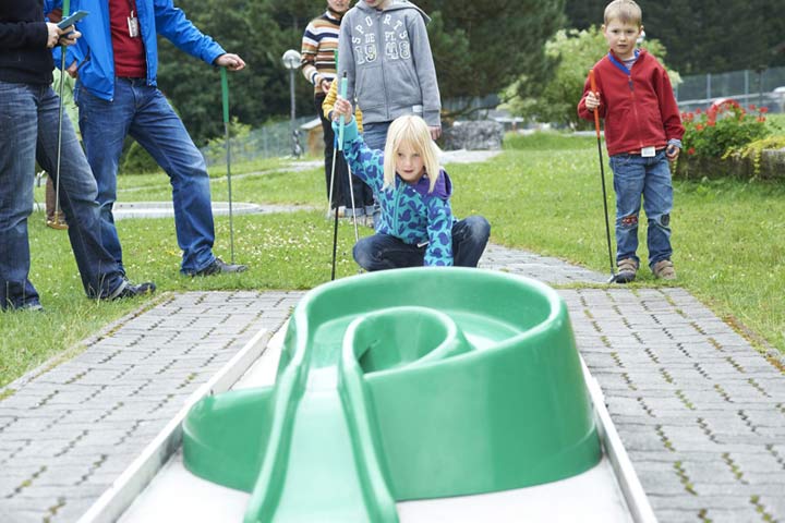 Unsere Gäste haben freien Eintritt und freies Spiel auf unserer Anlage in Lofer. Neben Minigolf können Sie hier auch PIT-PAT, Billard und Tischtennis spielen.
